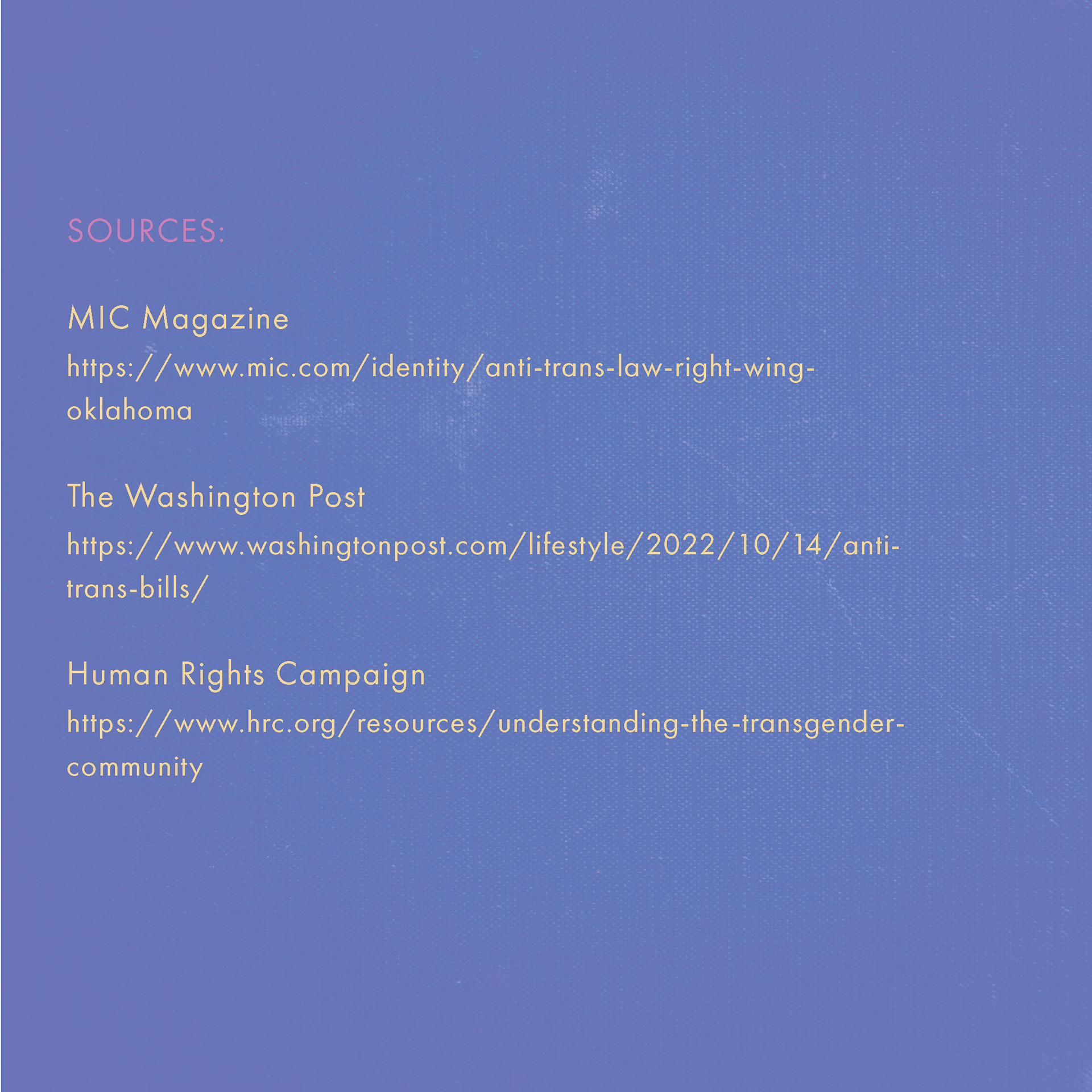 Anti-LGBTQ+ sentiment is an issue that has run rampant in our country for ages, and something I am passionate to advocate against. For this social media project, I created three separate Instagram infographics on the topic of transgender rights, and the current problem we have with in our country surrounding the desire from many to pass anti-trans legislation.
